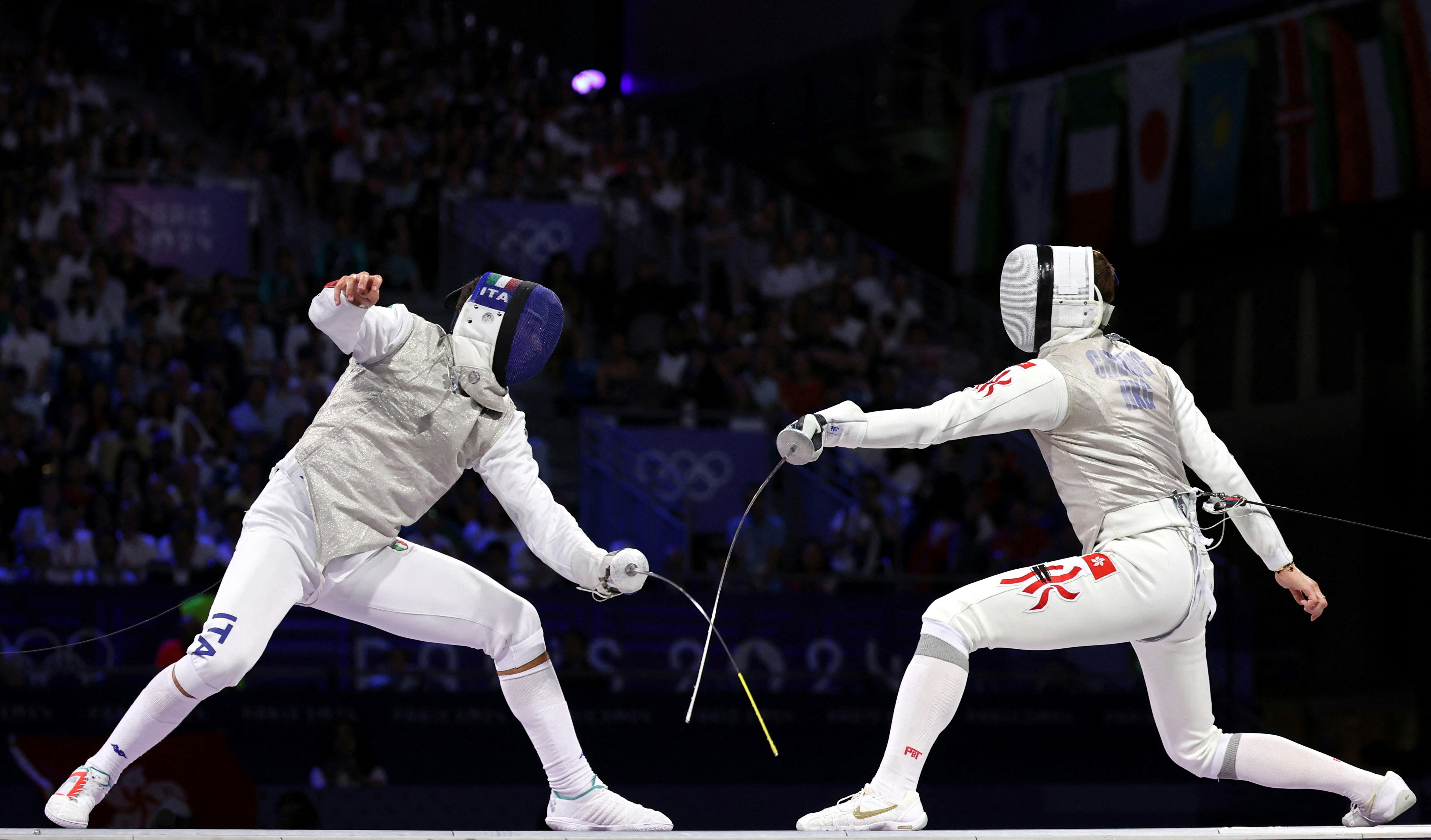 決賽由上屆奧運冠軍得主香港劍手張家朗對世界排名第13的意大利劍手馬奇,在對決過程中雙方互有得分,但「花劍」非常講究進攻權,先上前或有意圖進攻一方才能獲得進攻權取分,然而劍擊世界很多時出劍只發生在一瞬之間,在進攻權轉換方面裁判時有不一的判決,就算慢鏡重播也未必看得出答案。
