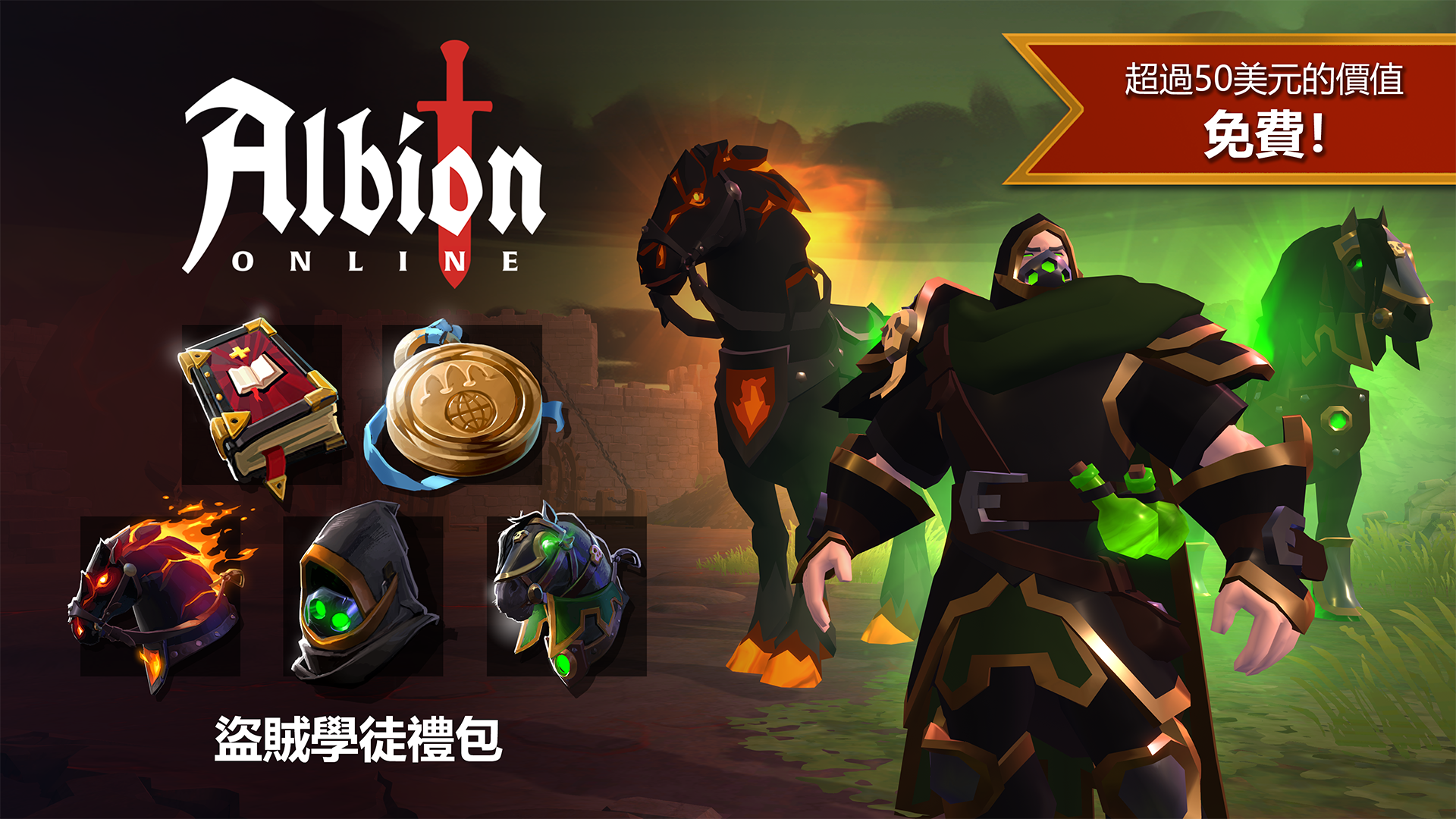 價值超過55美元的免費贈品!解鎖獨特的盜賊外觀、一款熾熱的坐騎造型,以及進度加成,幫助您在阿爾比恩中更快成長。