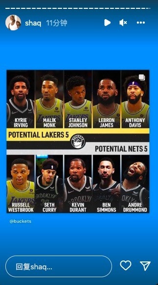 威少换欧文?奥尼尔转发潜在湖人&篮网首发阵容:詹欧眉VS杜威西